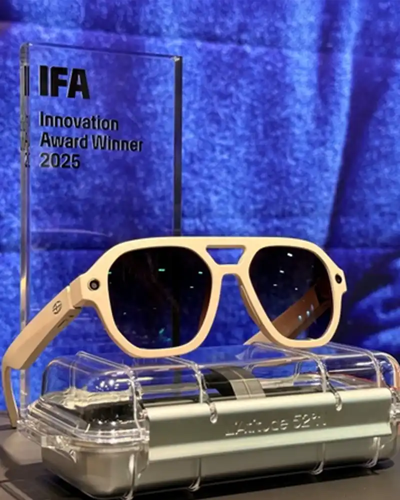 Ein besonderer Fokus lag auf der Smart Eyewear-Szene, darunter die Berliner Marke Latitude 52N mit ihrer Departure Collection. Diese Kollektion umfasst drei Modelle – „Berlin | 52°N“ mit markant-urbanem Navigator-Design, „Milan | 45°N“ als vielseitige Panto-Fassung und „Antwerp | 51°N“ mit elegant-minimalistischer Geometrie. Technologisch integrieren diese Brillen eine 12-Megapixel-POV-Kamera, offene Stereo-Lautsprecher, KI-gestützte Sprachsteuerung und Walkie-Talkie-Funktion via Bluetooth Mesh für Offline-Gruppenkommunikation, zudem sind sie IP65-zertifiziert wasser- und staubresistent.
